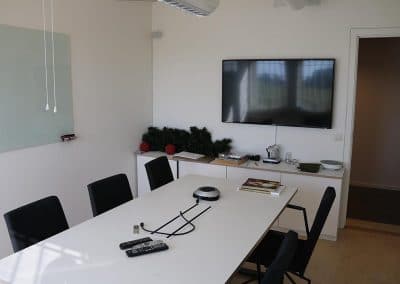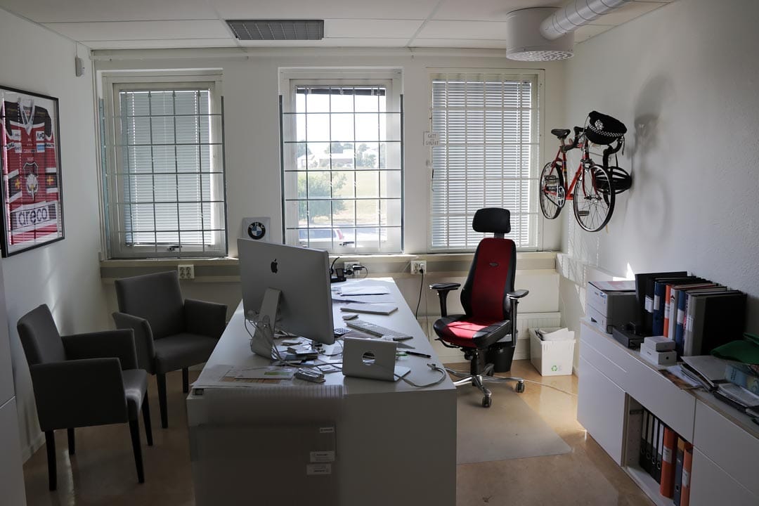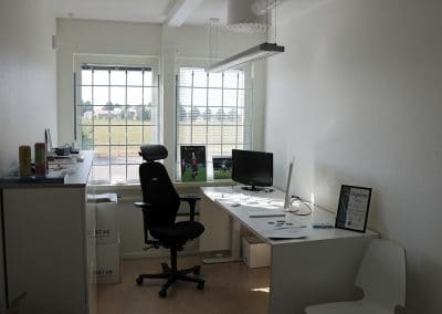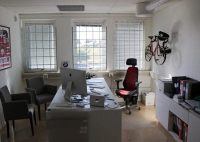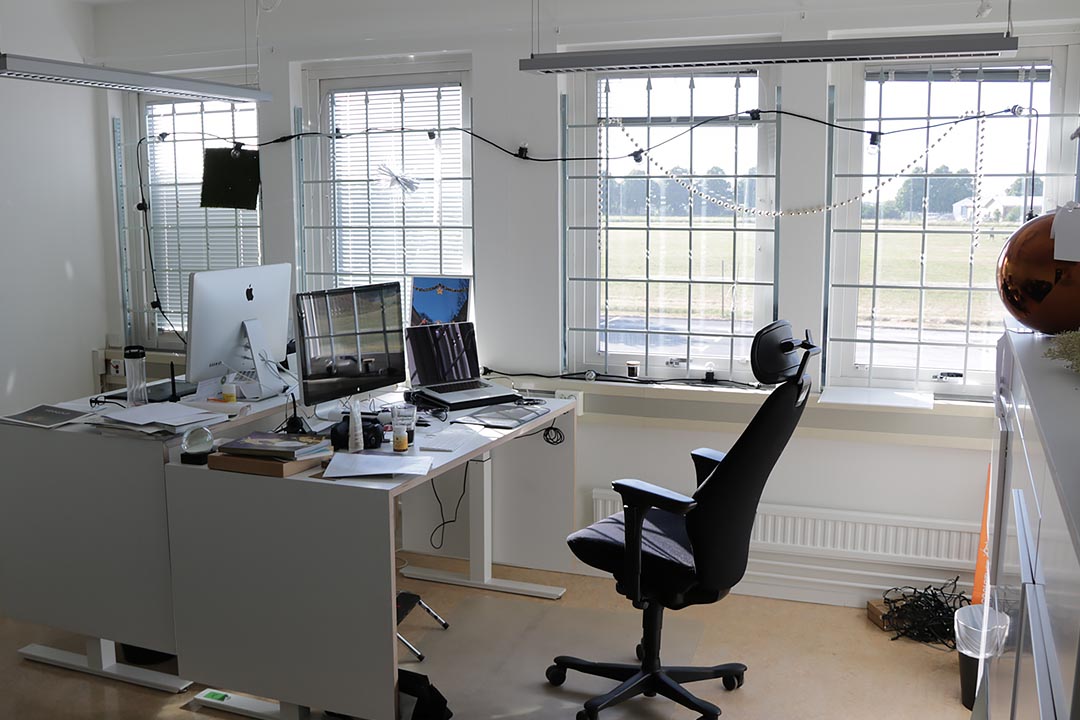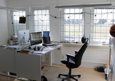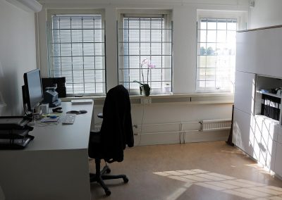 Huset vi sitter i är byggt 1979 men våra egna lokaler är vidgjorda flera gånger. Senast i fjol målades allting om och ventilationen drogs om. Vi har dragit kilometrar med kablar för el och nätverk i lokalerna och det finns gott om uttag i alla rum.