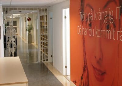 Vi har själva haft kontor på Fosie i femton år och trivs väldigt bra här. Läget är både centralt och inte centralt. För oss med kunder både i och utanför Malmö och i och utanför Skåne är läget centralt. Vi har 13 minuter med bil till Triangeln. 18 minuter till Ideon i Lund. 16 minuter till Sturup när vi ska till kunder i Stockholm. 27 minuter till Kastrup om vi ska ännu längre bort. Eller 7 minuter till Hyllie om vi vill ta tåget över bron.
