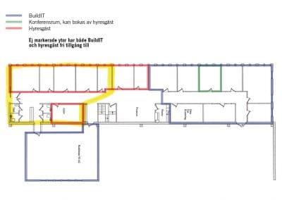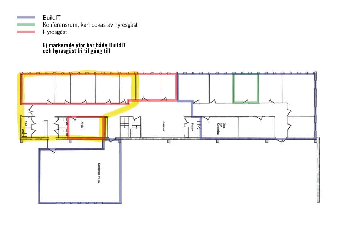 - Ungefär 210 kvadratmeter kontors- och förvaringsyta (se ritning)